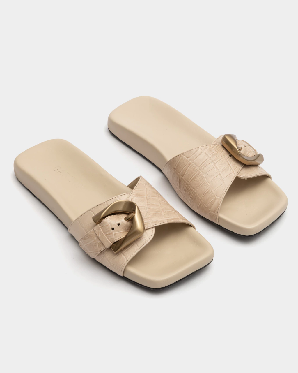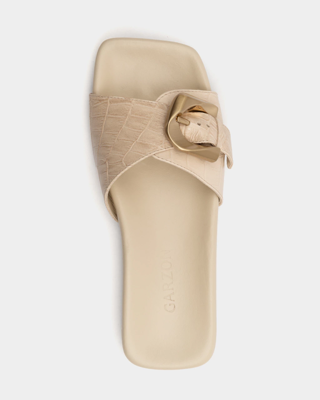 O Slide da Garzon é a combinação perfeita entre design contemporâneo e conforto. Com bico quadrado e cabedal em croco, traz um visual moderno que eleva produções do dia a dia com um toque sofisticado. A fivela com detalhe torcido reforça a identidade da marca e adiciona um charme extra à peça. Todo confeccionado em couro, inclusive a palmilha, o modelo garante conforto e durabilidade. Uma escolha versátil e elegante para quem valoriza praticidade sem abrir mão de estilo.
